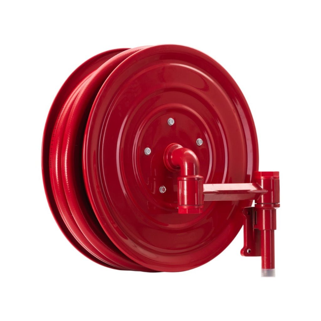 The FOC series swing type fire hose reel features a robust design with carbon steel discs coated in red epoxy powder, a brass waterway, and semi-rigid hoses equipped with a jet/spray nozzle. Positioned for wall or cabinet mounting, it offers a controlled water supply crucial for fire risk mitigation in various settings like schools, hotels, and factories. Designed for ease of use, its swinging arm allows extensive rotation, facilitating efficient extinguishing during emergencies.
